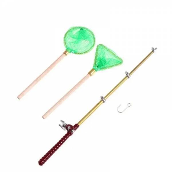 Декоративная миниатюрная удочка RC-Avtomag (#AV-EL06029) 1:12 Miniature Fishing Rod 1Set of Miniature Fish Rod Fishing Net Mini House Fishing Rod Models