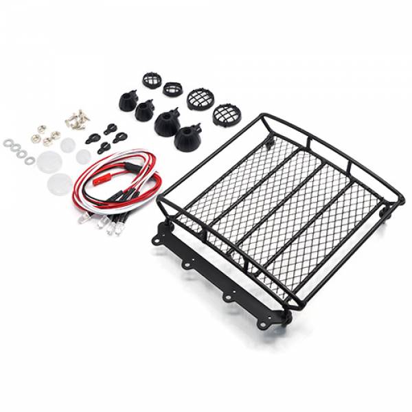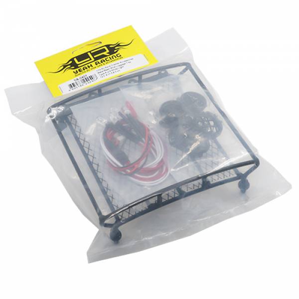 Yeah Racing 1/10 RC Rock Crawler Accessories Metal Mesh Wire Luggage Tray Type A w/ 4 White Light 12.5cmX11.5cmX3cm YA-0401 - металлический багажник на крышу с 4-мя яркими светодиодными фонарями, размер багажника 12.5cm X 11.5cm X3cm .