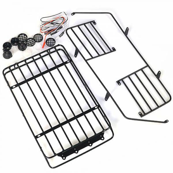 Yeah Racing (#YA-0561) Metal Roll Cage w /Luggage Tray White Led Light For Jeep Wrangler Body - багажник на крышу для трофи моделей в масштабе 1/10.