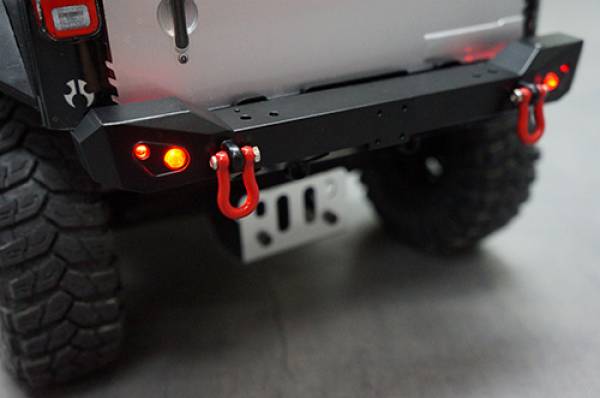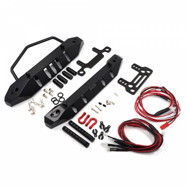 Yeah Racing Aluminum Alloy Front Rear Bumper w/ LED Set For Axial SCX10 YA-0431 - бампер имеет точки крепления для четырех светодиодных (в комплекте) спереди и сзади, в комплекте также имеются две серьги для каждого бампера. Таким образом, это дает вам множество вариантов для установки лебедки. Передний бампер поставляется с регулировкой ширины, чтобы соответствовать ширине переднего бампера SCX10.