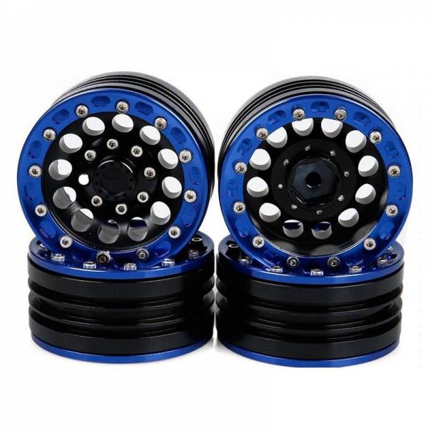 Диски бедлоки RC Turn (#RTCW02001) 1.9" Aluminum Beadlock Crawler Wheels 4pcs - Blue Ring - бэдлоки алюминиевые 1,9 дюйма для трофи моделей.