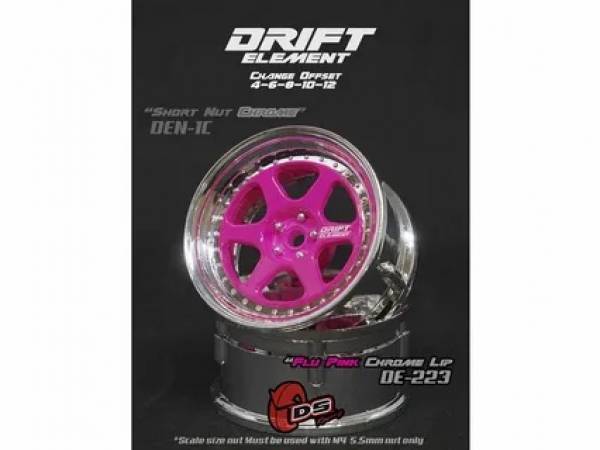 DS Racing (#DS-DE-024) 5 Spokes (Flu PINK/CHROME Lip/BLACK Rivets) Wheel for Drift Car 2 pcs - диски пластиковые для шоссейных/дрифт моделей в масштабе 1/10.