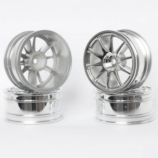 HSP (#FR191S) Silver 10 Spokes Wheel 26mm (+3) 4 шт. - диски алюминиевые для шоссейных/дрифт моделей в масштабе 1/10.