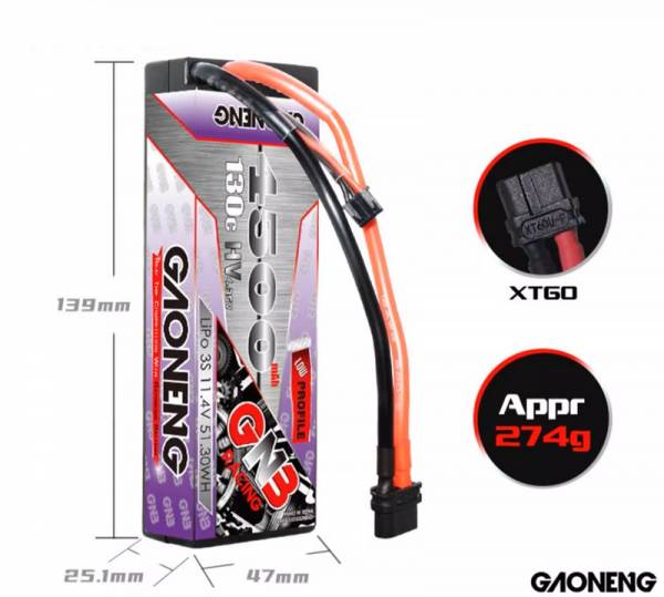 GAONENG (#GNB45003S130WHV) GNB Lipo 4500MAH 3S 11.1V 130C - аккумулятор в мягком корпусе.