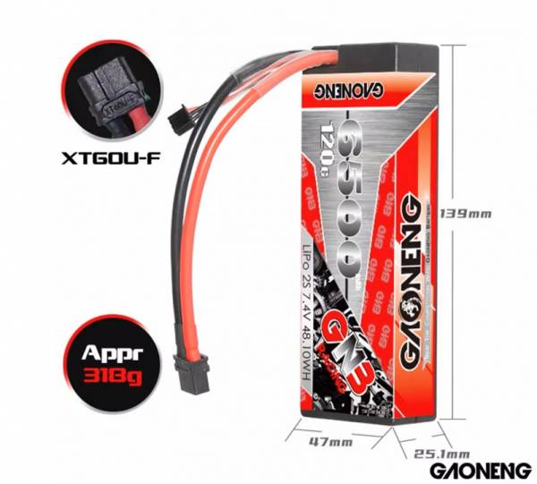 GAONENG (#GNB6500/120-2S) GNB Lipo 6500MAH 2S 7.4V 120C - аккумулятор в жестком корпусе.