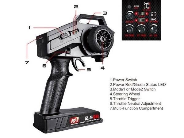 Аппаратура радиоуправления RemoHobby (#RH2) 2.4G Transmitter, 2-х канальная аппаратура (AFHDS (система автоматического выбора канала связи) - аналог по смыслу Spread Spectrum (расширенный диапазон)).