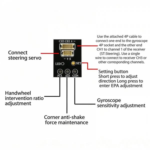 NEEBRC RX-G7B 3-осевой гироскоп для моделей автомобилей, металлический CNC мини-гироскоп AGS 4.8-10V для RC гонок, дрифта, шоссейных и лодочных моделей.