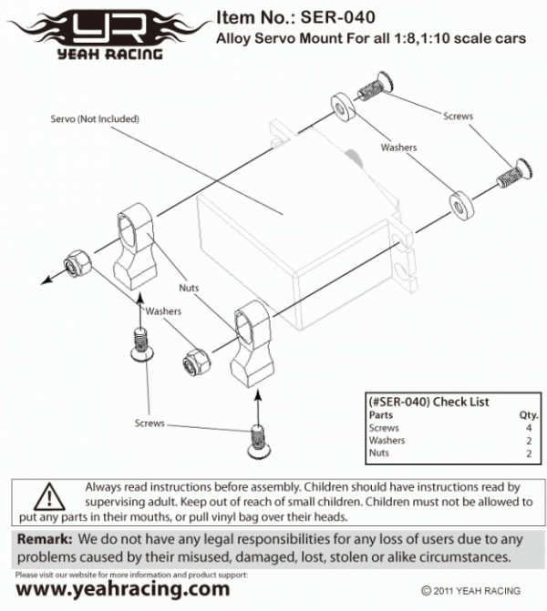 Yeah Racing SER-040BU Alloy Servo Mount For all 1:8,1:10 RC - универсальное крепление сервопривода.