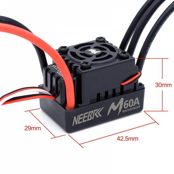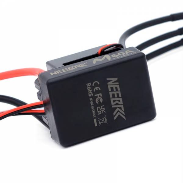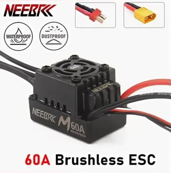 Бесколлекторный влагозащищенный регулятор NeebRC Model (#M60A-ESC-S24G01) для моделей масштаба 1:10, 1:12. Регулятор защищен от влаги и пыли и подходит для использования на трассах с малым количеством воды. Подходит для любых бессенсорных бесколлекторных электродвигателей. В данном регуляторе скорости используются только высококачественные компоненты для повышения его токотдачи и долговечности.