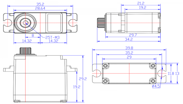 - Сервопривод Feetech (#FT1018M) HV Metal Gear Mini Digital 7.4V 7.5kg.cm 180° Servo;