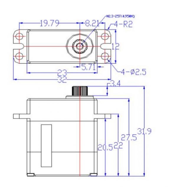 - Рабочая скорость:073sec/60°(62RPM) @7.4V;