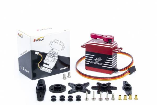 Сервопривод Feetech (#FT5825M) Metal Gear 7.4V 25kg.cm 180° Steel Tooth Iron Core Servo - цифровой стандартный сервопривод с металлическим редуктором в алюминиевом корпусе и углом поворота 180°.