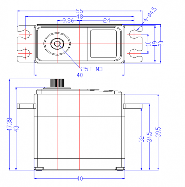 - Вращающий момент:4 V 25 kg.cm, 180 Degree Digital Servo;