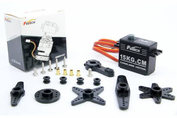 - Сервопривод Feetech (#FT9015M) Metal Gear 7.4V 15kg Digital 180° Coreless Motor Servo;