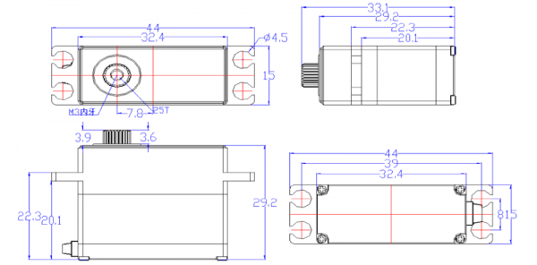 - Вращающий момент: 7.4 V 15 kg.cm, 180 Degree Digital Servo;