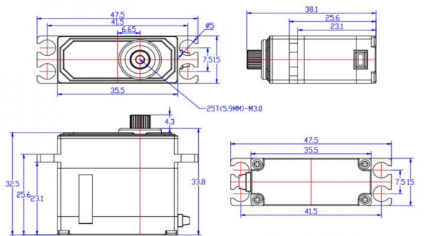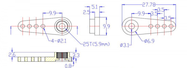 - Вращающий момент: 7.4V 22kg.cm 180 Degree Digital Servo;