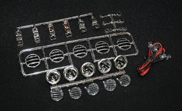 3Racing (#3RAC-LEDK03) Led Crawler Light Bar Set (5 Spotlight) - сонары произвольной установки, подключаются в блок света (третий канал управления на передатчике не требуется). При наличии третьего канала на передатчике возможно удалённое управление светом (вкл/выкл).