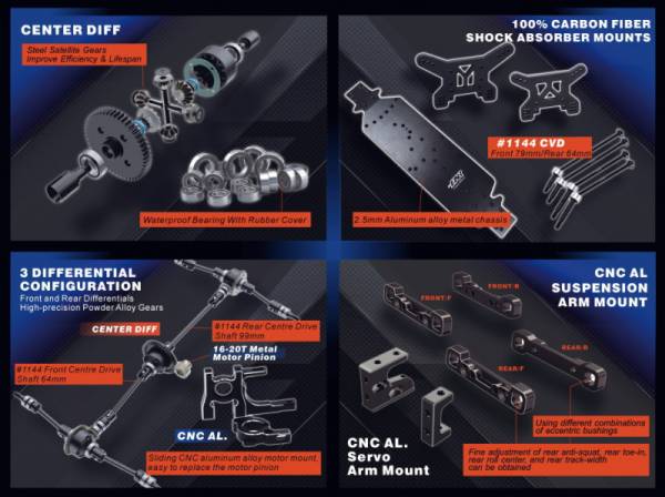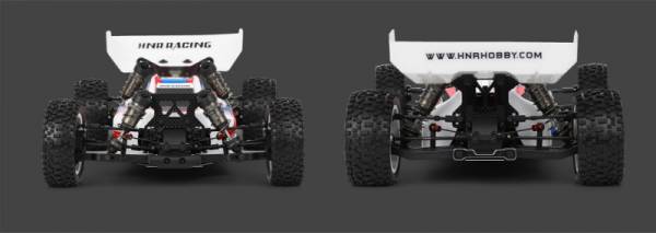 HNR H9806 SATURN 1/10 2,4G 4WD 90 км/ч - новая электрическая багги 1/10 «SATURN». Он тщательно разработан, чтобы соответствовать стандартам профессиональных гонок по бездорожью. В комплект поставки входит установленный на заводе пульт дистанционного управления и полная система питания (за исключением аккумуляторов и зарядных устройств). Корпус доступен в двух цветах: розовом и красно-синем. «Saturn» имеет шасси из алюминиевого сплава 7075 толщиной 2,5 мм и раму амортизатора из углеродного волокна. Весь автомобиль оснащен высокоточными шарикоподшипниками. Система трансмиссии имеет трехдифференциальную конструкцию спереди, посередине и сзади со стандартными противоскользящими стержнями спереди и сзади. Рама поддерживает различные профессиональные настройки параметров, что позволяет легко справляться с различными требованиями местности. Кроме того, он оснащен быстросъемным алюминиевым креплением двигателя, на модели установлен бесколлекторный двигатель 3652-4000 кВ и регулятор скорости Haoying 60A. Он совместим с литиевыми батареями высокой плотности 2-3S.