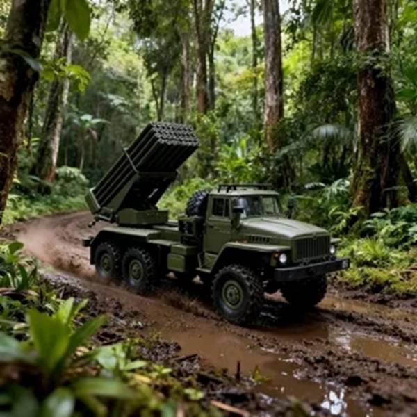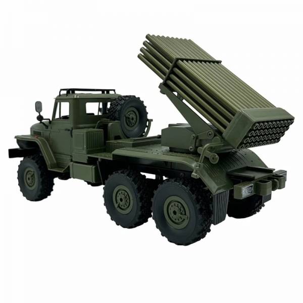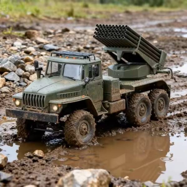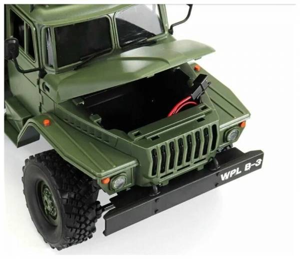 Радиоуправляемая полу копия легендарного советского грузовика УРАЛ выполнена в масштабе 1:16, оснащена полным приводом, девствующей рессорной подвеской и мощным коллекторным электромотором. Радиоуправляемый УРАЛ имеет богатую деталировку и светящиеся передние фары. В кабине можно увидеть руль и интерьер. Кузов и кабина изготовлены из прочного АВS пластика и установлены на металлическую раму. LiIon аккумулятор 7.4В/500мАч.