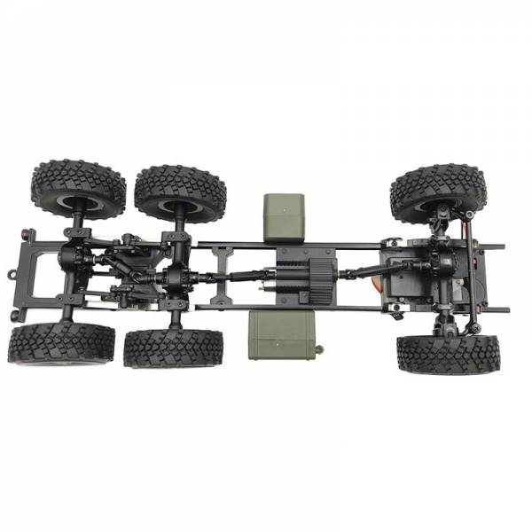Радиоуправляемый, внедорожный грузовик УРАЛ имеет полный карданный привод и дифференциалы. Мосты установлены на металлических рессорах, что позволяет комфортно перевозить различные предметы по неровной дороге. Колеса с мягкими резиновыми шинами, с агрессивным протектором, позволяют миниатюрному грузовику без проблем преодолевать бездорожье и переезжать камни.