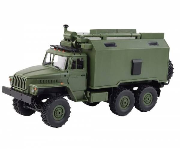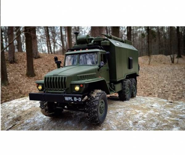 Радиоуправляемая полукопия легендарного советского грузовика УРАЛ выполнена в масштабе 1:16, оснащена полным приводом, девствующей рессорной подвеской и мощным коллекторным электромотором. Радиоуправляемый УРАЛ имеет богатую деталировку и светящиеся передние фары. В кабине можно увидеть руль и интерьер. Кузов и кабина изготовлены из прочного АВS пластика и установлены на металлическую раму. LiIon аккумулятор 7.4В/500мАч.