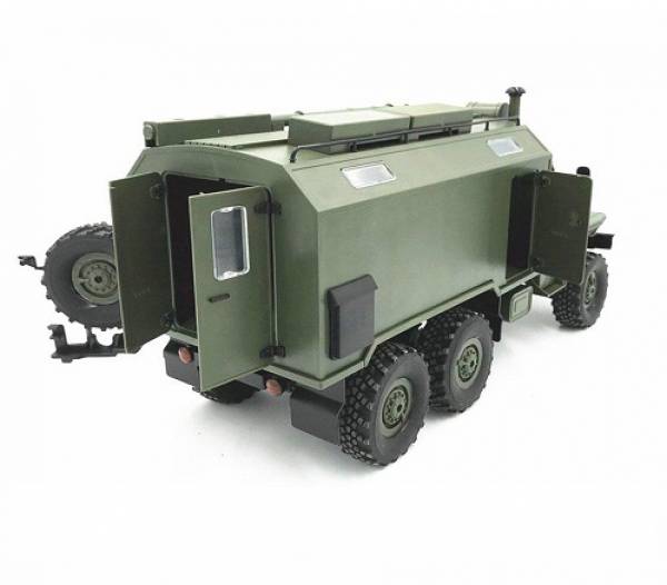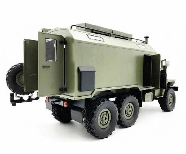 Радиоуправляемый внедорожный грузовик УРАЛ имеет полный карданный привод и дифференциалы. Мосты установлены на металлических рессорах, что позволяет комфортно перевозить различные предметы по неровной дороге. Колеса с мягкими резиновыми шинами с агрессивным протектором позволяют миниатюрному грузовику без проблем преодолевать бездорожье и переезжать камни.