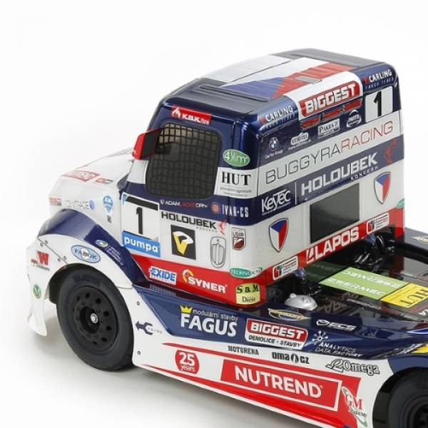 Tamiya Buggyra Fat Fox 1/14 4WD On-Road Semi Truck- радиоуправляемая модель для сборки, данная модель воспроизведена с высокой точностью в масштабе 1/10. Реалистичный корпус из 3 частей изготовлен из легкого и прочного поликарбоната, с отдельно формованными пластиковыми боковыми зеркалами, стяжкой и частями заднего бампера. На раме ванны установлена усиленная стекловолокном нейлоновая верхняя палуба и зубчатые крышки, улучшающие жесткость. Радиальные шины диаметром 70 мм в паре с колесами, разработанными только для этой модели.