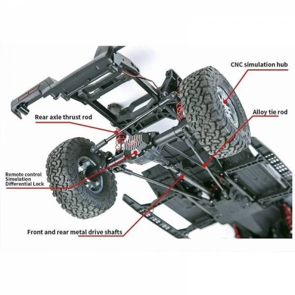 - Передняя независимая подвеска/задний неразрезной мост (доступен дифференциал); нейлоновый мост + кожух моста, изготовленный на станке с ЧПУ, стальные тяги;