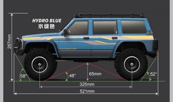 Модель оснащена реалистичным кузовом из поликарбоната Patrol Y60 с пластиковыми элементами декора, решетка радиатора, зеркала, багажник на крышу.
