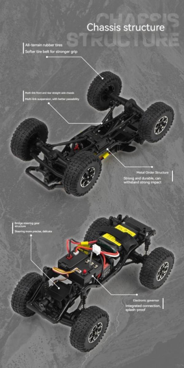 • Полностью готовый комплект радиоуправляемого внедорожника с хорошим ходом подвески для бездорожья;
