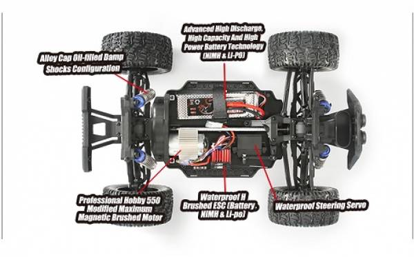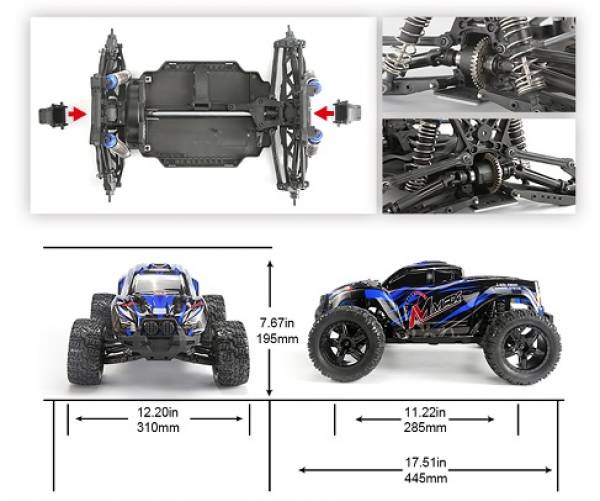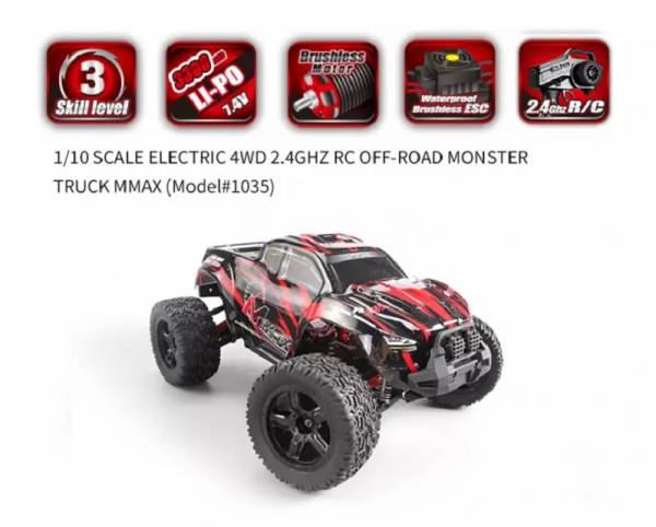 RemoHobby (#1035) 1/10 Scale Electric 4WD 2.4GHZ RC Off-Road Brushless Monster Truck - это одна из самых мощных и популярных моделей серии машин, выпущенных всем известной компанией Remo Hobby! Автомобиль выполнен в масштабе 1:10 и отличается от конкурентов оптимальным соотношением цены и качества деталей. Полный привод повышает проходимость и управляемость модели. Установлены бесколлекторный двигатель 3300kv. Мощный аккумулятор Li-Po 7.4V 3300 mAh придаст модели большую мощность! Пульт управления на частоте 2.4GHz позволит управлять моделью на расстоянии до 150 метров. Отличные технические характеристики радиоуправляемых машин Remo Hobby удивят даже тех покупателей, которые видели множество подобных моделей. Они производятся с использованием закаленной крепкой стали, пластика и резины. В их комплект входит все необходимое для того чтобы быстро начать их использовать.