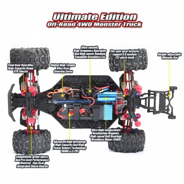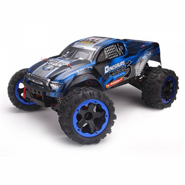 RemoHobby (#8036) 1/8-Scale Electric 4WD 2.4GHZ RC Off-Road Brushless Monster Truck Dinosaurs Master -полноприводный внедорожник, выполнен в масштабе 1/8. Данная модель спроектирована на основе уникального модульного шасси, что позволило совместить превосходные ходовые характеристики с простотой обслуживания. Модель Ultimate Brushless оснащена мощной влагозащищенной бесколлекторной системой и имеет превосходные внедорожные характеристики. Специально разработанные шины из мягкой резины и специальные колесные диски позволят чувствовать себя уверенно на высоких скоростях и на любых рыхлых грунтовых покрытиях, а также на снежных и песчаных участках.