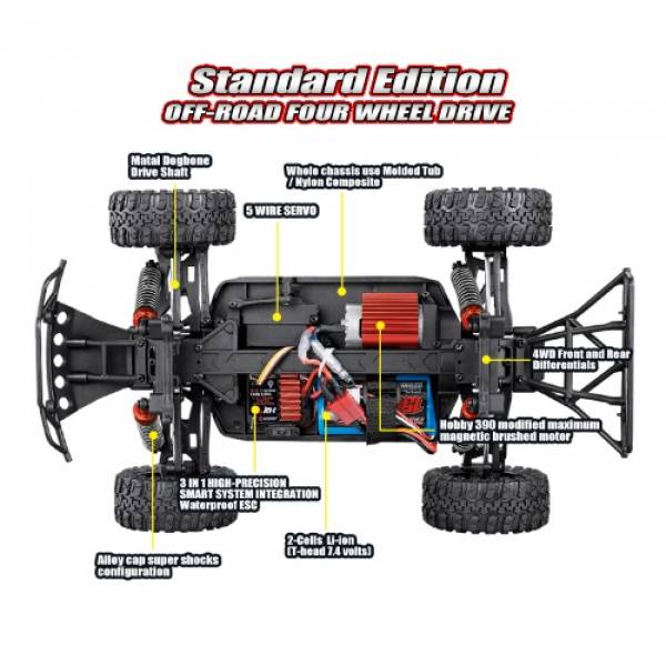 RemoHobby (#1621) 1/16 Scale Electric 4WD Short - Cource Track Rocket - это одна из самых мощных и популярных моделей серии машин, выпущенных всем известной компанией Remo Hobby! Автомобиль выполнен в масштабе 1:16 и отличается от конкурентов оптимальным соотношением цены и качества деталей. Полный привод повышает проходимость и управляемость модели. На шасси установлены коллекторный двигатель 390 класса и влагозащищенный приемник 3 в 1. Мощный аккумулятор LiPo 7.4V 1500mAh придаст модели большую мощность! Пульт управления на частоте 2.4GHz позволит управлять моделью на расстоянии до 150 метров. Отличные технические характеристики радиоуправляемых машин Remo Hobby удивят даже тех покупателей, которые видели множество подобных моделей. Они производятся с использованием закаленной крепкой стали, пластика и резины. В их комплект входит все необходимое для того чтобы быстро начать их использовать.