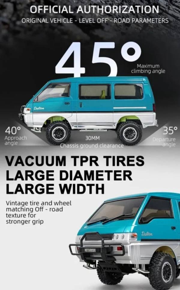 Официально лицензированный LDRC LD1296 Mitsubishi Delica в масштабе 1/12 радиоуправляемый автомобиль идеально воспроизводит классический внедорожный фургон, любимый коллекционерами и энтузиастами моделей. Разработанный для долговечности, реализма и приключений, этот 4WD RC автомобиль обеспечивает отличные внедорожные характеристики с двухскоростной коробкой передач и щеточным мотором 380.
