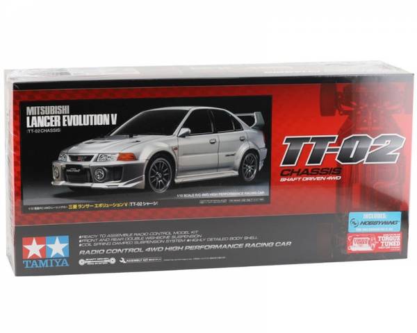 Mitsubishi Lancer Evolution был разработан как основа для раллийных автомобилей и постоянно совершенствовался с момента своего дебюта в 1992 году. Этот комплект для сборки R/C model представляет собой модель 5-го поколения, продававшуюся с 1998 года, которая отличалась кузовом шириной 1770 мм и завоевала звание чемпиона как среди производителей, так и среди водителей. Мощный корпус автомобиля выполнен из поликарбоната и украшен наклейками. Модель основана на шасси TT-02.