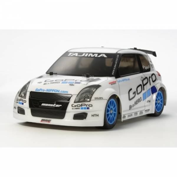 Tamiya GoPro Monster Super Sport Swift - радиоуправляемая модель выполненная в масштабе 1/10. Новое расположение комплектующих частей обеспечивает низкий центр тяжести и оптимальный баланс веса, что не может остаться незамеченным в конструкции данного шасси. Перпендикулярно расположенный аккумулятор, привод на переднюю ось, а также три основных части рулевой трапеции обеспечивают отличную устойчивость на поворотах при высокой скорости.