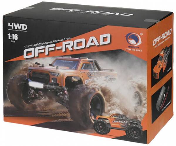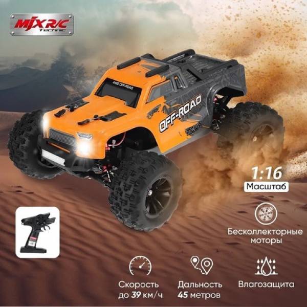 Радиоуправляемая машина монстр MJX Hyper Go 4WD Brushless 1:16 - MJX-M163 - это новая модель от популярного производителя MJX R/C. Автомобиль выполнен в масштабе 1:16 , в комплектации: бесколлекторный двигатель с системой охлаждения. Полный привод повышает проходимость и управляемость модели. На Hyper Go установлен бесколлекторный двигатель 2845KV, влагозащищенный приемник и регулятор ESC 45А. Мощный аккумулятор Li-Po 7.4V 1050 mah, идущий в комплекте, придает модели большую мощность! Пульт управления на частоте 2.4Ghz позволит управлять моделью на расстоянии до 120 метров. LED подсветка фар и кузова сделает игру в темное время суток незабываемой.