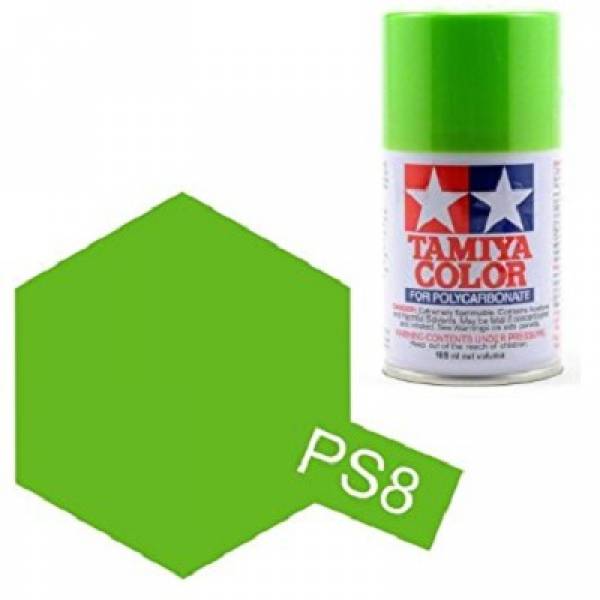 Краска для поликарбоната (лексана) PS-08 (светло зеленый) в аэрозольном баллоне для окрашивания кузовов автомоделей. Подходит для большинства типов автомодельных кузовов.