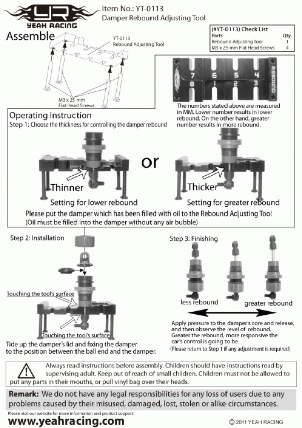 Yeah Racing (#YT-0113OR) Aluminum Damper Rebound Adjusting Tool OR - этот фантастический инструмент специально разработан для регулировки отдачи амортизаторов. Числа, указанные на инструменте, измеряются в «мм». Чем меньше число, тем ниже отскок.