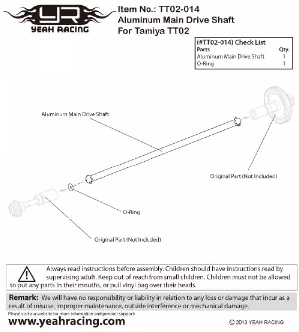 Yeah Racing (##TT02-014BU) Aluminum Main Drive Shaft For Tamiya TT02 TT02B - кардан для моделей Tamiya TT02.