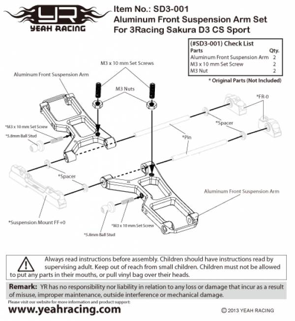 Рычаги передние алюминиевые (#SD3-001PK) для моделей 3Racing Sakura D3.