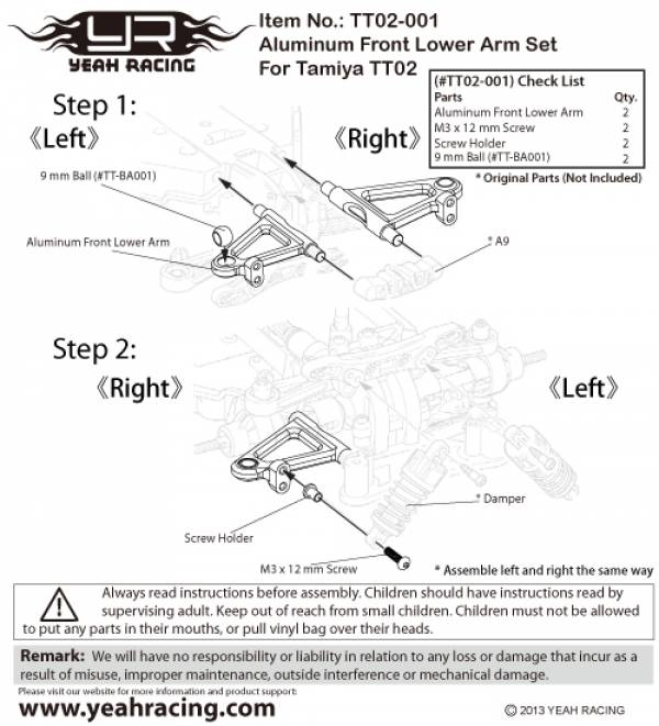 Рычаги передние алюминиевые (#TT02-001BU) для моделей Tamiya TT-02.