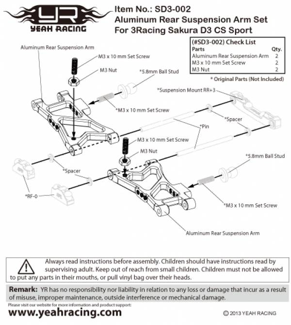 Рычаги задние алюминиевые (#SD3-002PK) для моделей 3Racing Sakura D3.