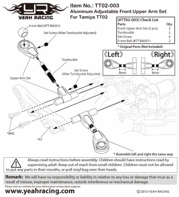 Рычаги передние верхние алюминиевые (#TT02-003BU) для моделей Tamiya TT-02.