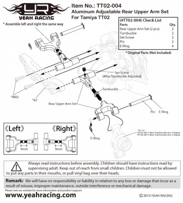 Рычаги задние верхние алюминиевые (#TT02-004BU) для моделей Tamiya TT-02.