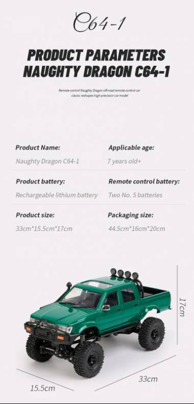 Радиоуправляемый трофи WPL (#SG-C-64-1-G) WPL Naughty Dragon Hilux 4WD 1:16